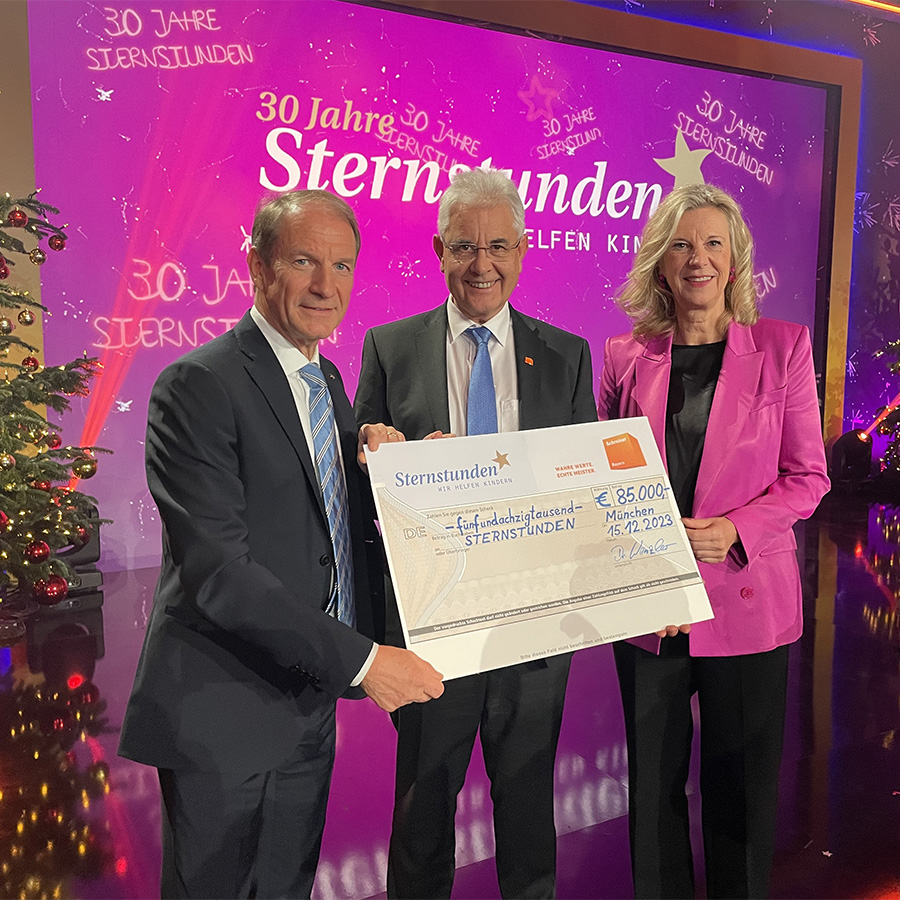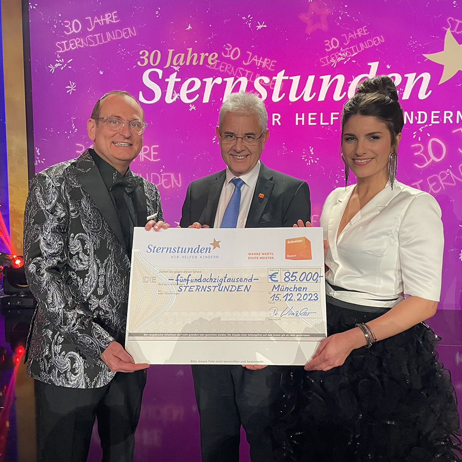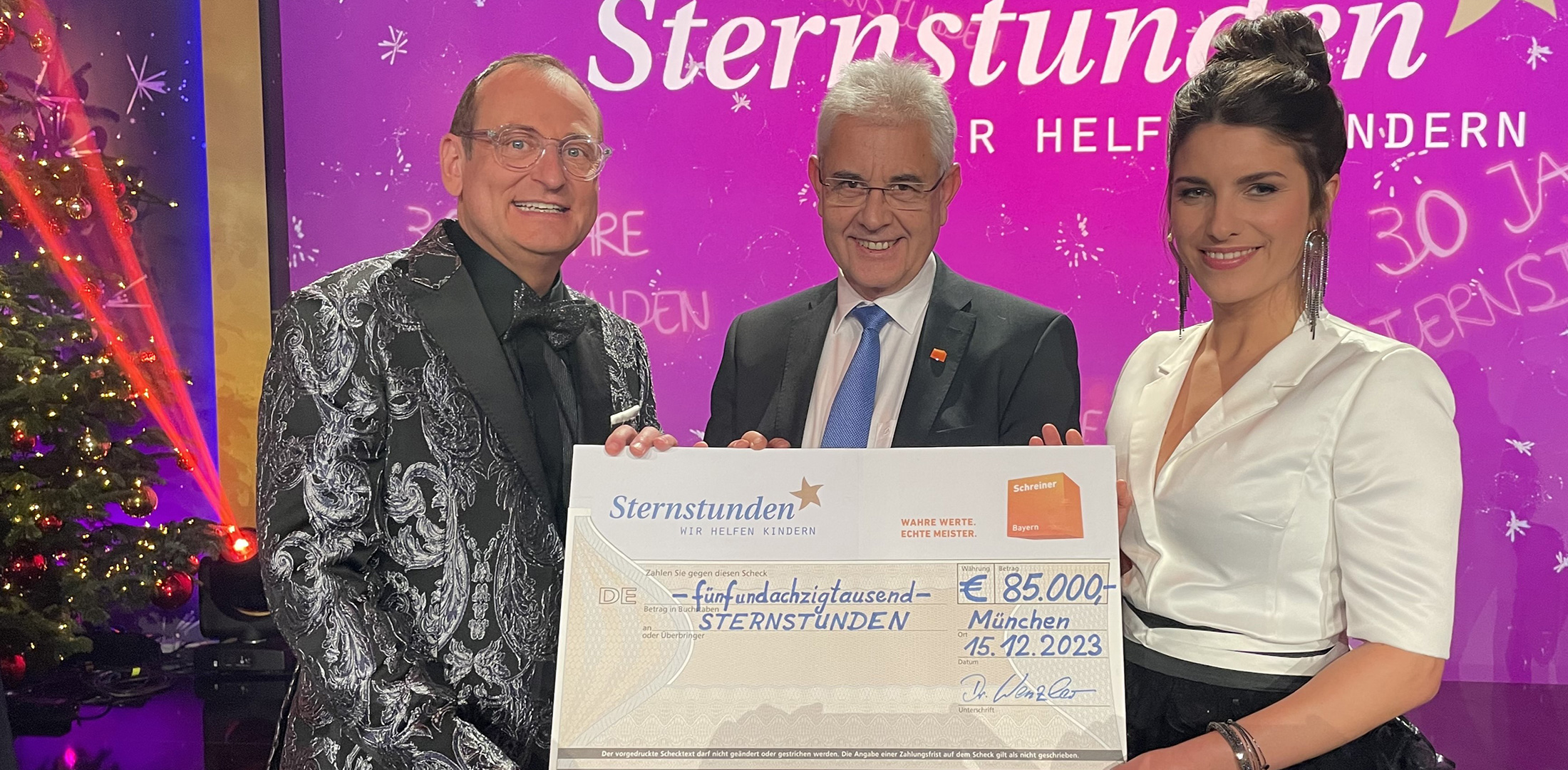 Bei der Sternstundengala am 15.Dezember 2023 wurde die Rekordspende von 85.000,-- Euro durch Dr. Christian Wenzler den Hauptgeschäftsführer des Fachverbands Schreinerhandwerk Bayern übergeben.